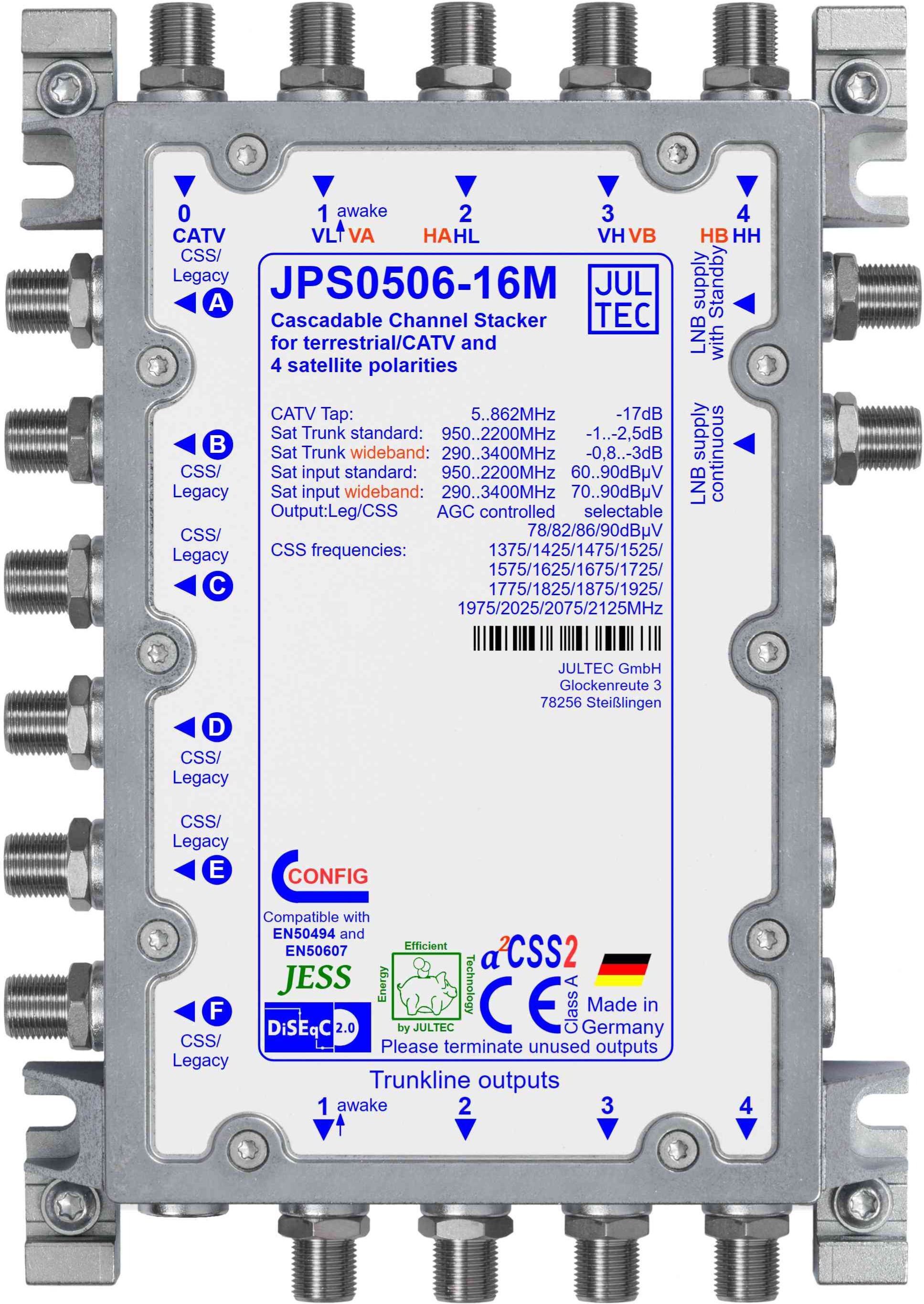 | Schirmung/EMV | CE (EN 60728-2), Klasse A |
